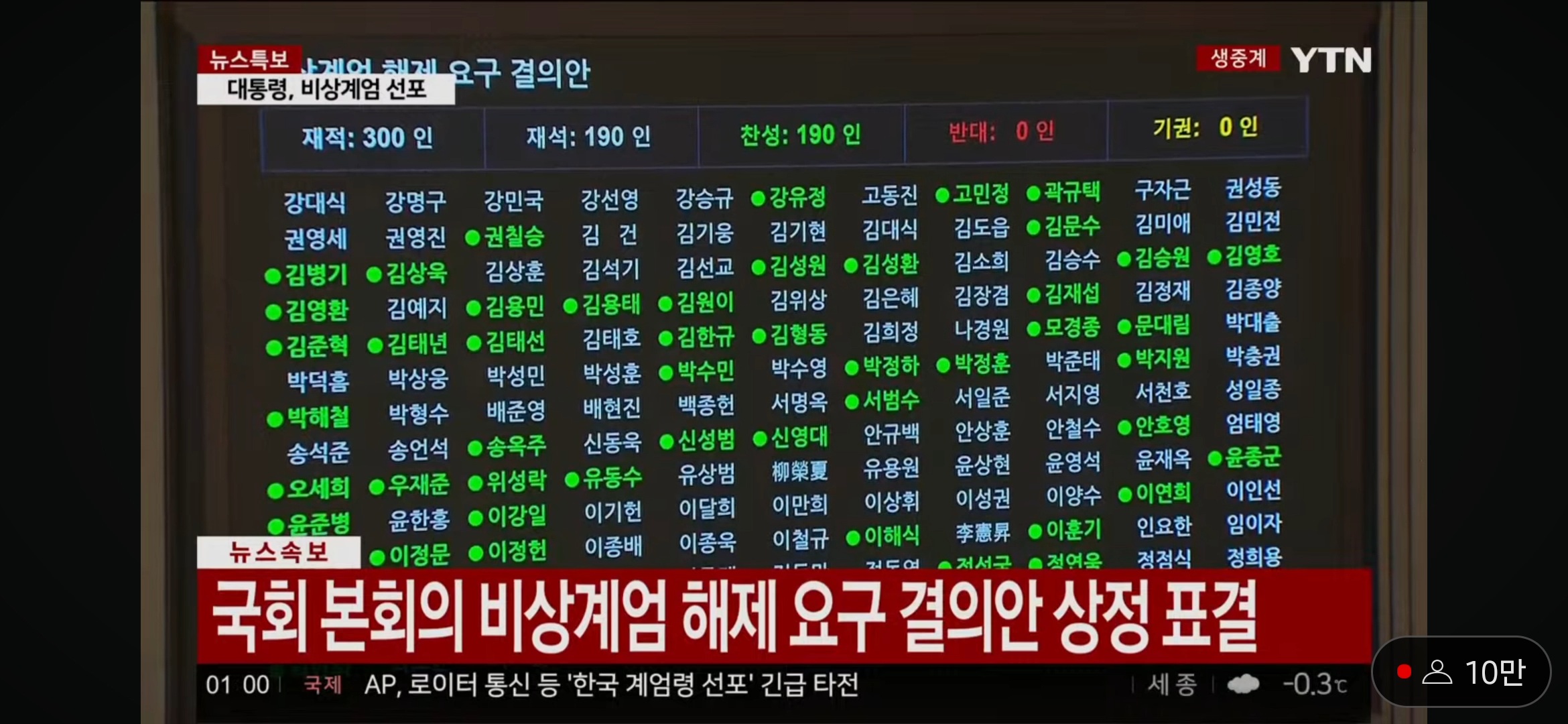 현재 계엄해제 요구 결의안이 가결되었습니다.