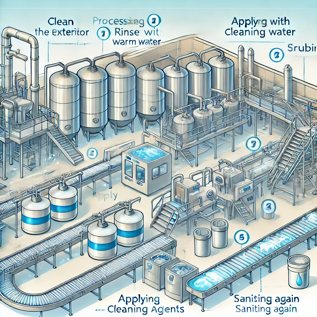 세척제 선택 시 설비의 재질과 오염 정도를 고려해야 하며, 세척 온도와 농도를 적절히 조절해야 합니다. 특히, 알칼리와 산성 세제를 함께 사용할 경우 독성의 염소가스가 발생할 수 있으므로 주의가 필요합니다.