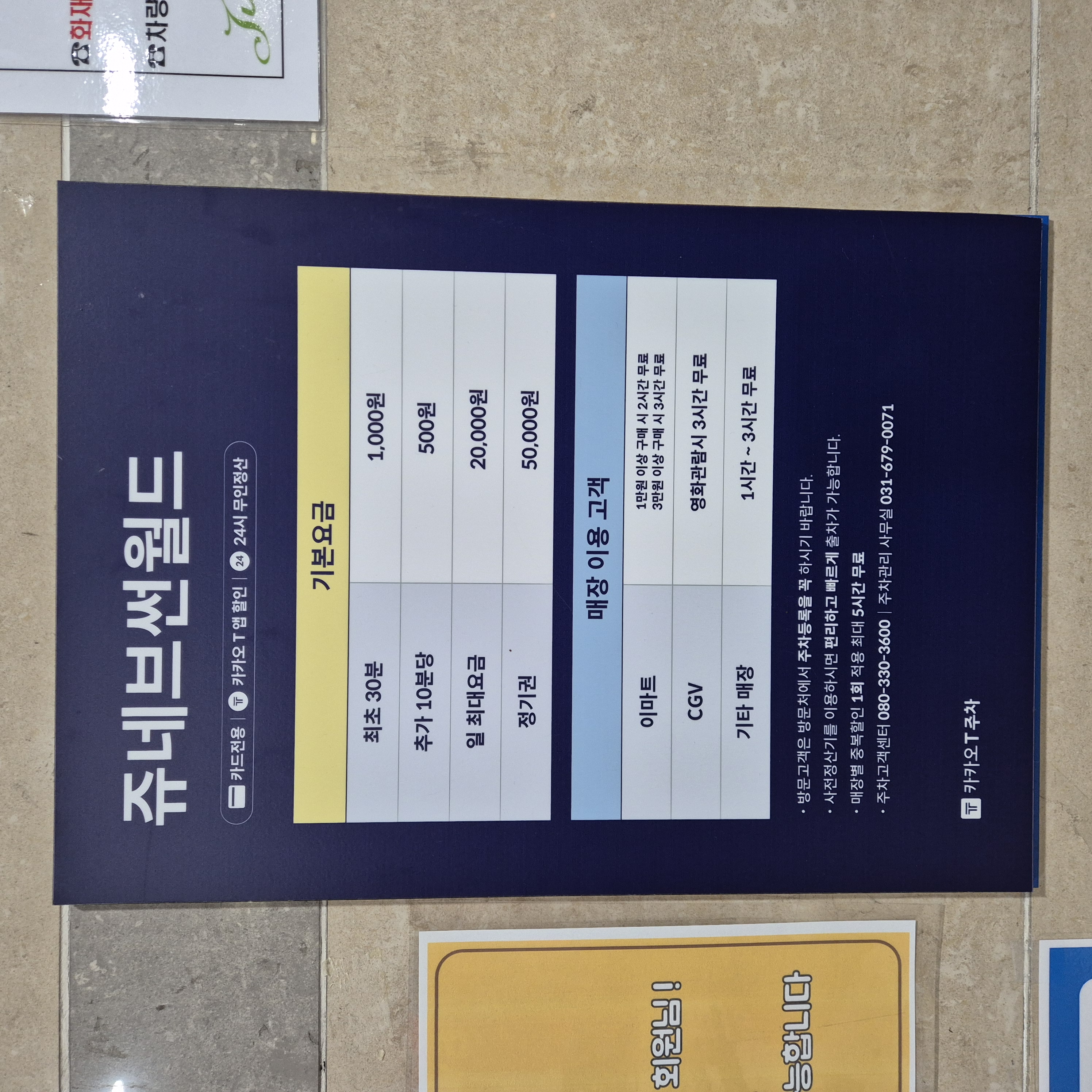 주차: 쥬네브 썬월드 지하주차장을 이용할 수 있으며, 식사 후 3시간 무료 주차가 가능합니다.